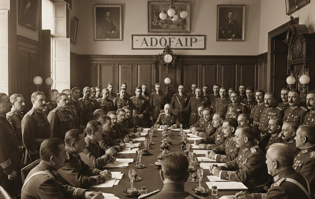 En la ciudad de Lima, a las cuatro de la tarde del día veintisiete de Junio de Mil Novecientos Treinta y uno, en el Local del Directorio de SOCIEDADES DE TIRO del PERU, sito en la calle de la Moneda Nro. 790; se reunió un grupo de Oficiales Superiores y Subalternos del Ejército en Situación de Retiro.